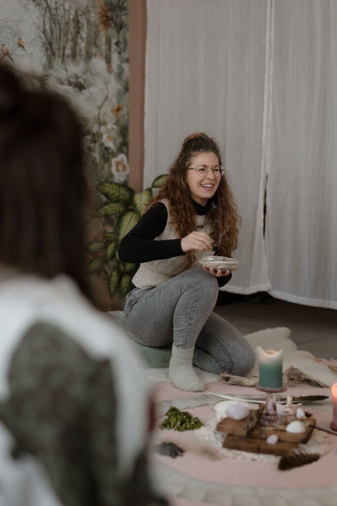 Mal sitzen wir ums Feuer, singen, ziehen Orakelkarten, tauchen in eine Kakaozeremonie ein.
